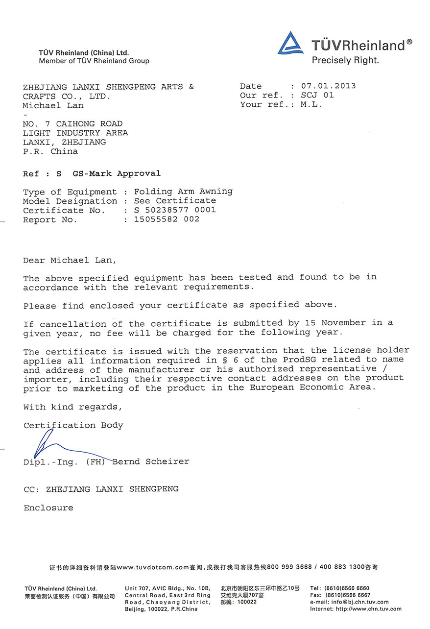 Patent certificate